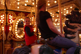 We started her birthday in the usual way - opening gifts and a birthday breakfast. (Hannah made lingonberry muffins for her.) After breakfast we headed to "the city". Ellie was so excited to see the giant octopuses (Gizmo and Electra) and all the other exhibits of fish there. It's a smaller aquarium so we were done seeing everything in couple of hours. Since we were in Seattle (and we rarely go there) we thought we'd take a ride on the carousel too. I don't think Ellie had ever seen one, let alone ride on one....another fun memory.